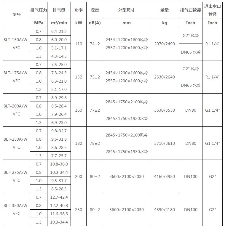 BLT VFC變頻系列空氣壓縮機(jī) 110-250kW利用歐洲集團(tuán)公司總部在空氣壓縮機(jī)上的杰出的設(shè)計(jì)能力和豐富的經(jīng)驗(yàn),遵循歐洲集團(tuán)嚴(yán)格的開(kāi)發(fā)流程及測(cè)試標(biāo)準(zhǔn),針對(duì)中國(guó)各種復(fù)雜氣候及惡劣工況進(jìn)行加強(qiáng)