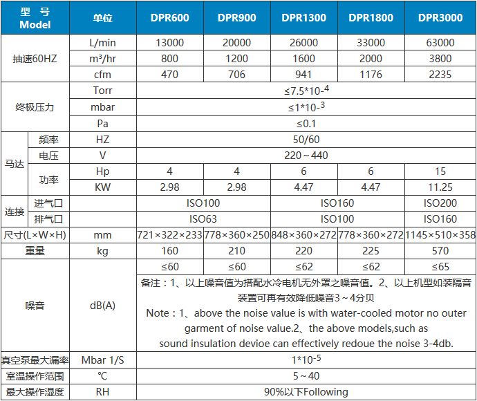 DPR羅茨泵性能特點(diǎn): ●泵腔內(nèi)無(wú)潤(rùn)滑油,實(shí)現(xiàn)高潔凈真空/There is no lubricating oil in the pump chamber, the realization of high vacuum clean. ●轉(zhuǎn)子采用進(jìn)口加工設(shè)備制成,具有良好的幾何對(duì)稱性,實(shí)