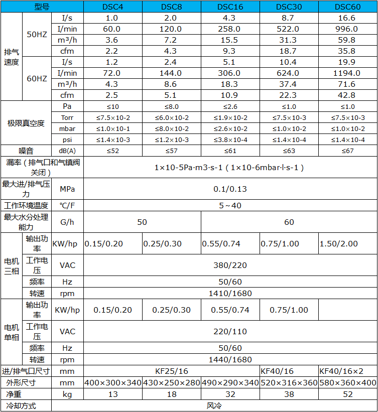 DSC系列無油渦旋真空泵由泵頭、電機(jī)、機(jī)座等構(gòu)成。泵頭含有動(dòng)、定渦旋盤、曲軸密封件、風(fēng)扇和泵殼等。渦旋盤由圓形平面和其上伸出的一條或幾條漸開線渦旋形盤避組成,定渦旋盤與動(dòng)渦旋盤組成渦旋盤付構(gòu)成無油渦旋真空泵的基本抽氣結(jié)構(gòu)。工作過程中,動(dòng)、定渦旋盤互不接觸,依靠相對(duì)運(yùn)動(dòng)形成容積不斷縮小的新月形封閉壓縮腔,通過吸氣、壓縮、排氣的循環(huán),使氣體從抽氣口吸入、排氣口排出,實(shí)現(xiàn)對(duì)被抽腔體抽真空。